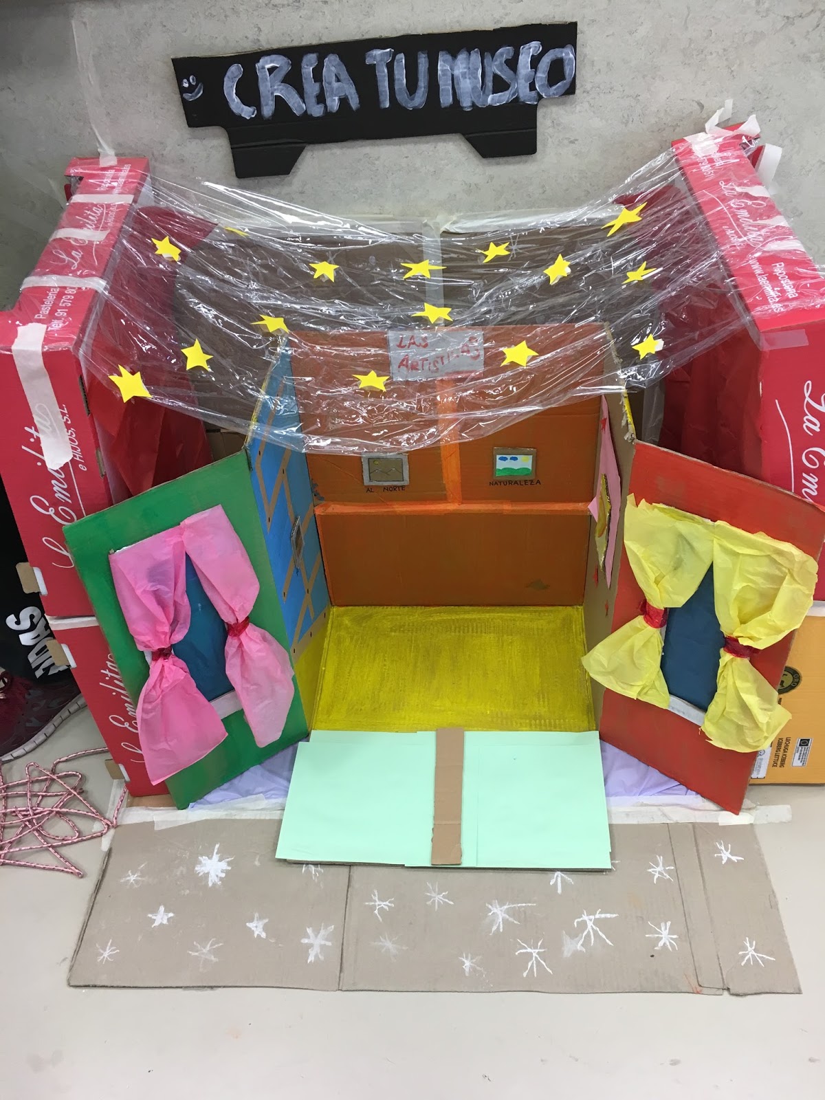 Su realización ha sido complicada (por eso arriba digo que ha sido un poco caos) ya que teníamos que hacer el cuadro entero en 3D con todo el mobiliario que aparece con cartón, y claro, no siempre salía lo que buscábamos.